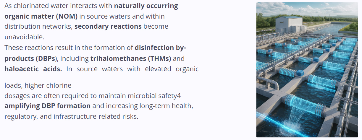 However,the samechemical reactivitythat makes chlorine indispensable for pathogen control also introduces unintended and cumulative consequences when applied continuously across complex water systems.
