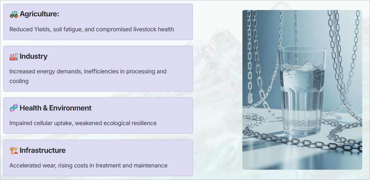 Water sustains every living system and industrial process. Yet today, its performance is quietly compromised not only by scarcity, but by invisible structural fatigue. The result: inefficiency across agriculture, industry, health, and infrastructure.